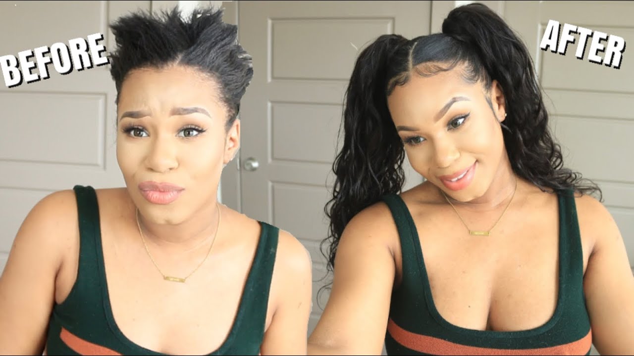 Pig Tails With Weave On Extremely Short Hair Short Hair Transformation Youtube